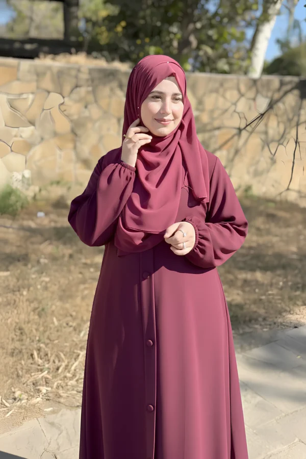 Zainab-Maroon Abaya combines elegance and comfort, crafted for a smooth, durable feel—a timeless wardrobe essential.