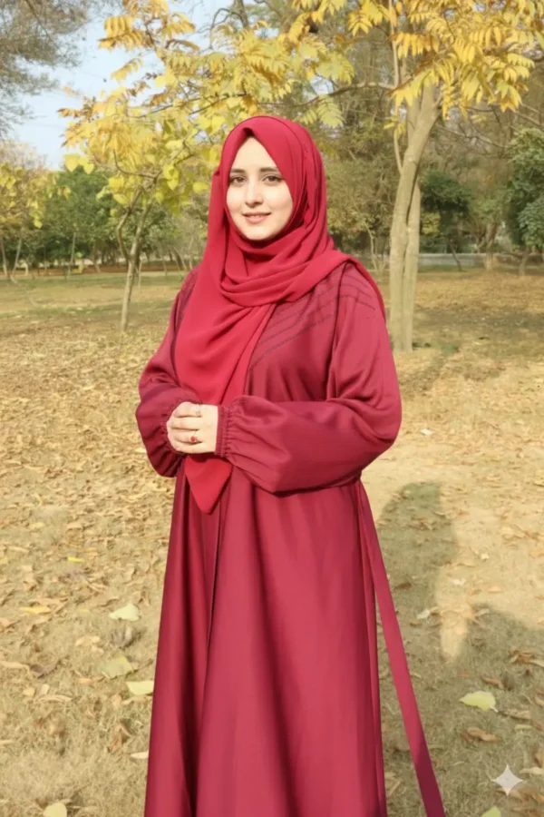 Zuhur-Maroon Abaya blends elegance and practicality, designed for comfort and style. This abaya is a perfect staple for fashion and ease.